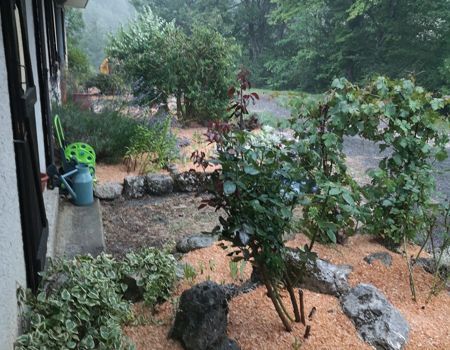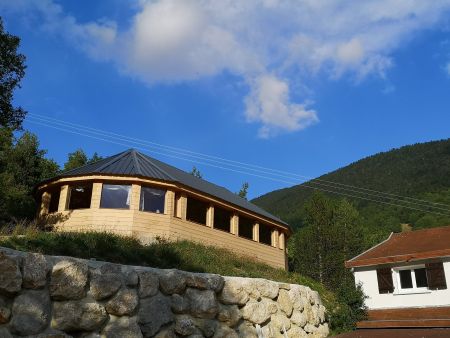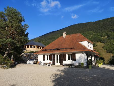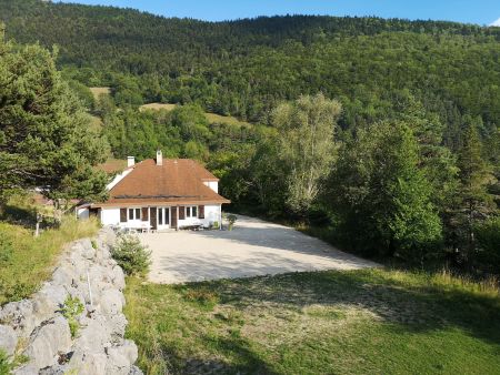 Située sur un terrain arboré de 9000 m2 surplombant le village de Château-Bernardà 1.000 mètre d'altitude sur le Balcon Est du Vercors